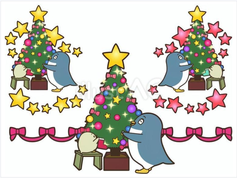 クリスマスツリーの飾り付けをする、ペンギン達です。お子様向けの素材となっておりますが、気に入ったらどんどんご利用下さいね!